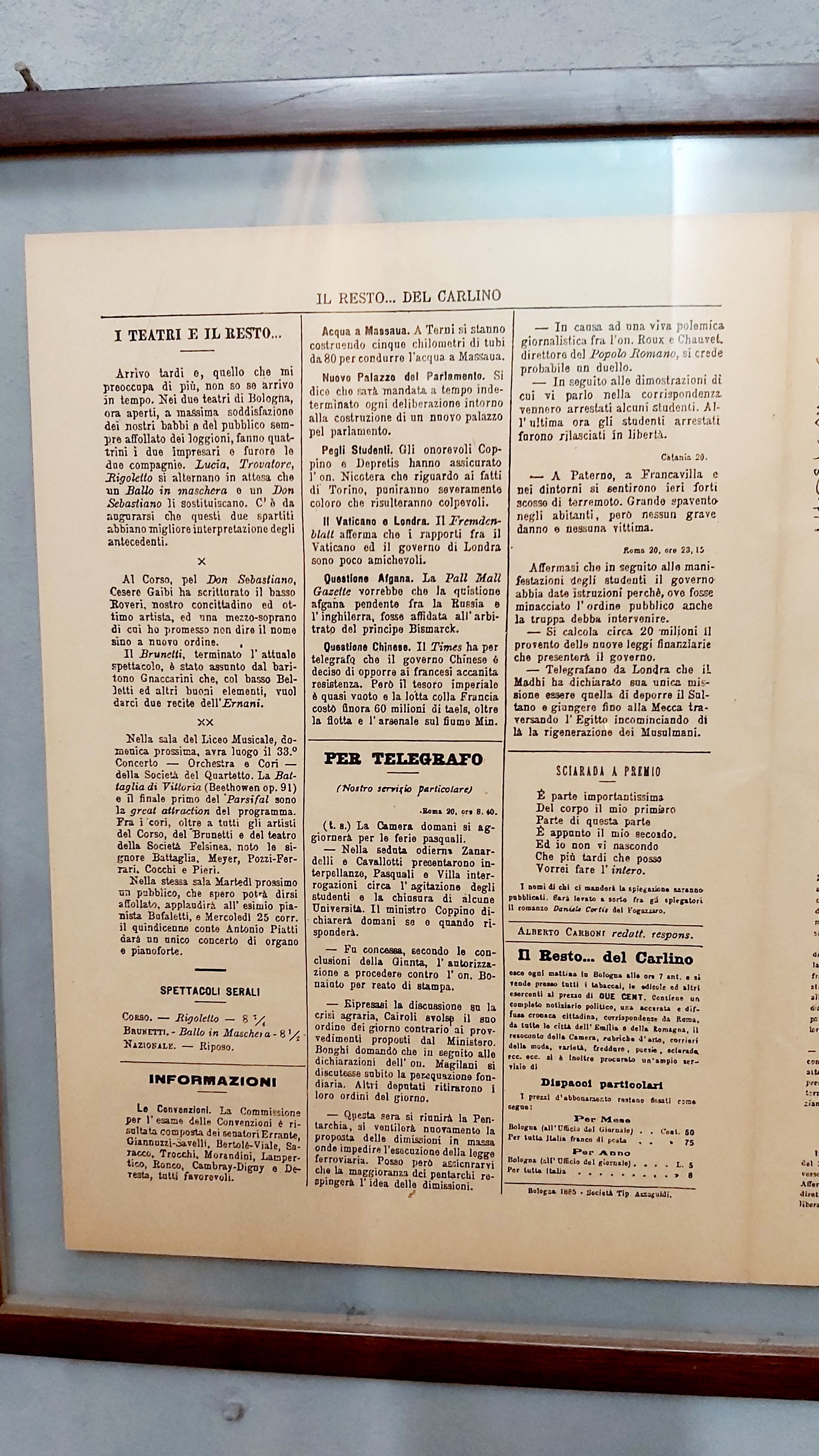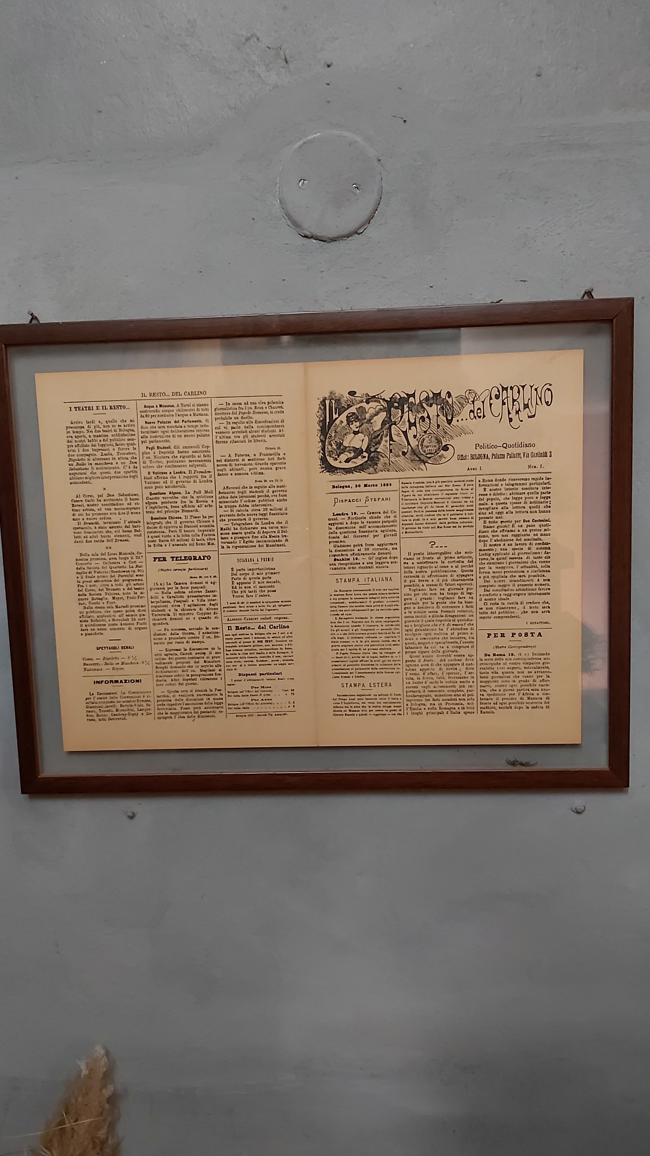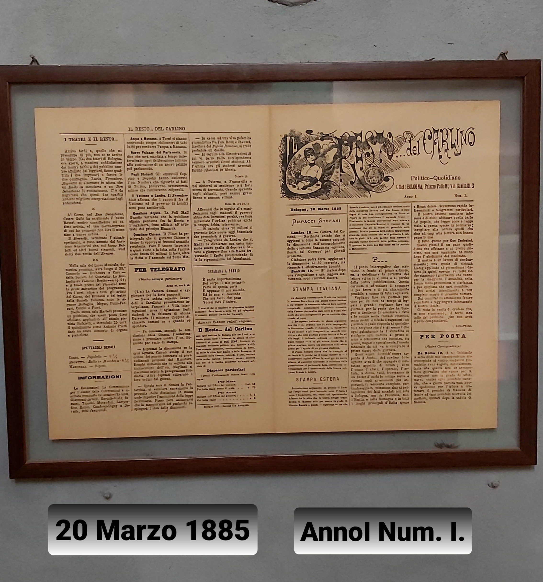 IL RESTO DEL CARLINO – ANNO I N.1 – 20 Marzo 1885