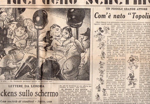Tredici anni fa, un giovane disegnatore squattrinato, divideva il suo lavoro e la sua povertà con dei topolini che gli tenevano compagnia in una camera al sesto piano a New York. I topolini erano i suoi soli amici: i loro leggeri movimenti pieni di intelligenza erano la sola ricreazione del giovane artista povero e senza speranze. Ma un bel giorno, l’artista fu cacciato dal suo sesto piano, fu separato dai suoi amici e si fece assumere come groom in un ireno che partiva per il west, e un bel giorno giunse a Los Angeles.
