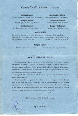 Bruni (Roma), Prato (Mondovì), Cobianchi (Fiume), Demma (Salerno), Cocito (Cuneo), Teodori (Firenze), Lambranzi (Verona), Calleri (Torino), Bottau (Bologna), Vigna (Torino), Marziali (Assisi), Mura (Cagliari).