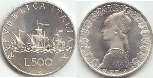 Monete Italiane: 500 lire Caravelle: