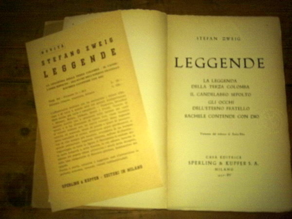 Stefan Zweig – Leggende – Casa Editrice Sperling e Kupfer Milano – 1937